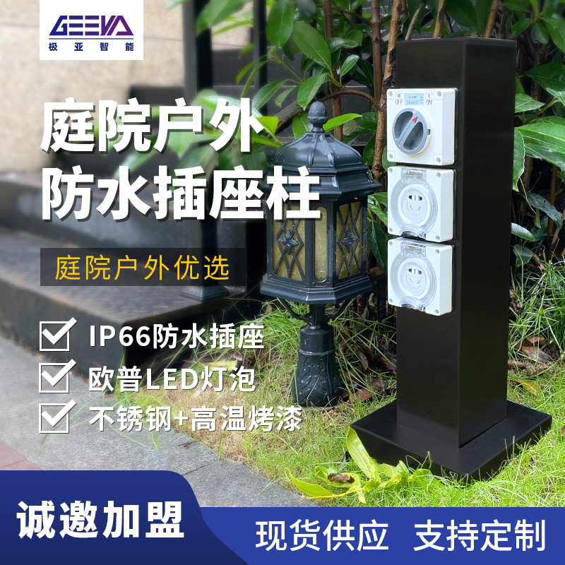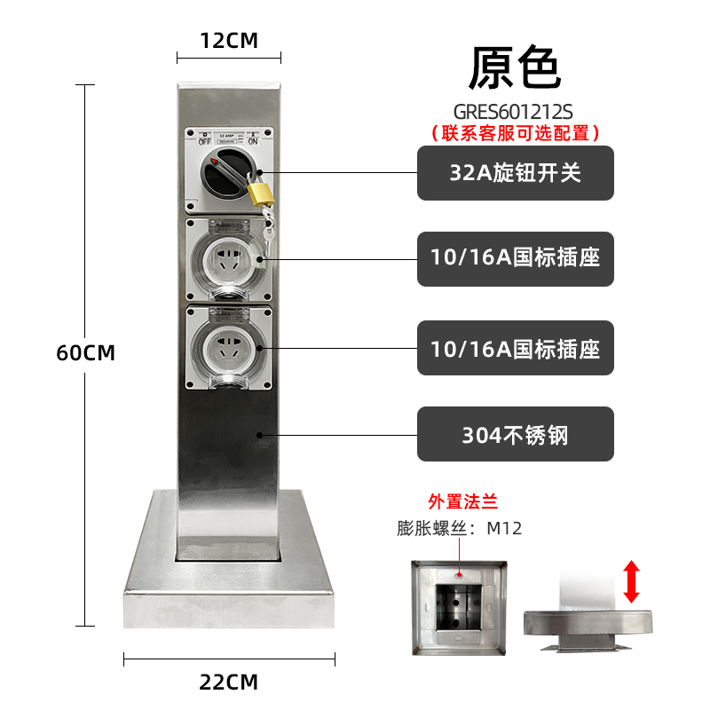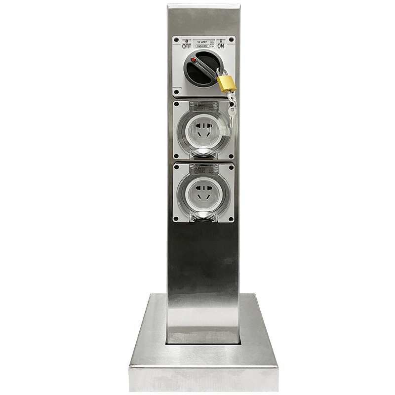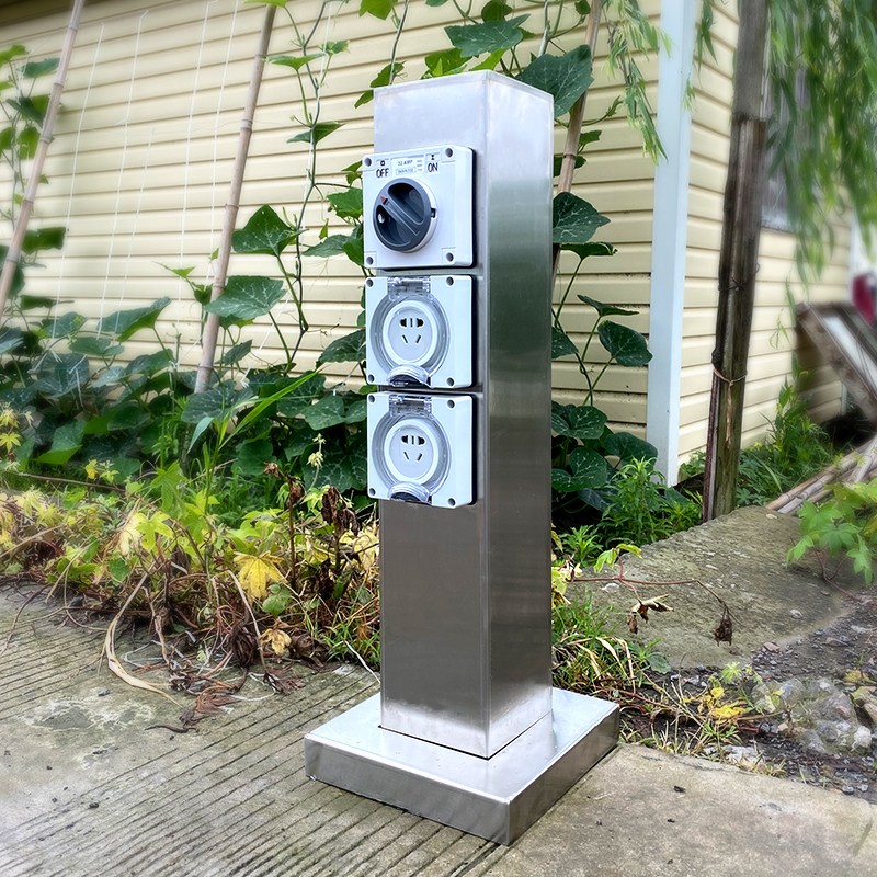 小型水電樁GRES601212S系列,電樁樁體使用304不銹鋼,擁有優秀的防水、抗腐蝕和抗紫外線能力,能在野外潮濕、強光照的惡劣環境下長時間使用。IP66防水國標插座,高強度防護,防水防塵。