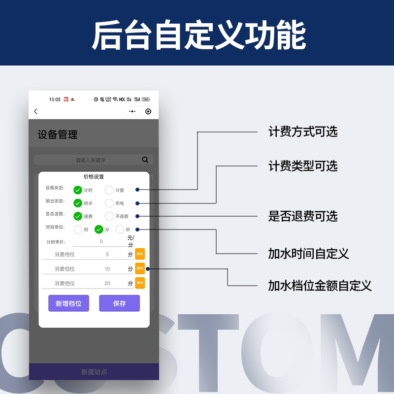 營地充電用水方案 “讓每一個角落有樁可尋” 庭院充電用水方案 戶外也可安全用電 船舶碼頭充電方案 戶外碼頭也能安全用電 自助加水設備方案 操作更簡單的智能“碼”上支付 充電用水設備定制 定制化設備OEM