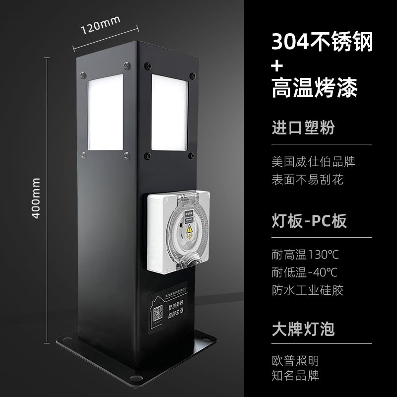 庭院插座柱GRES401212S/S-R,樁體采用304不銹鋼耐腐蝕性強,使用壽命延長。IP66密封防護設計,有效阻隔水塵,延長使用壽命。歐普LED,超長使用壽命,PC硅膠材質散熱快,耐用更安心。
