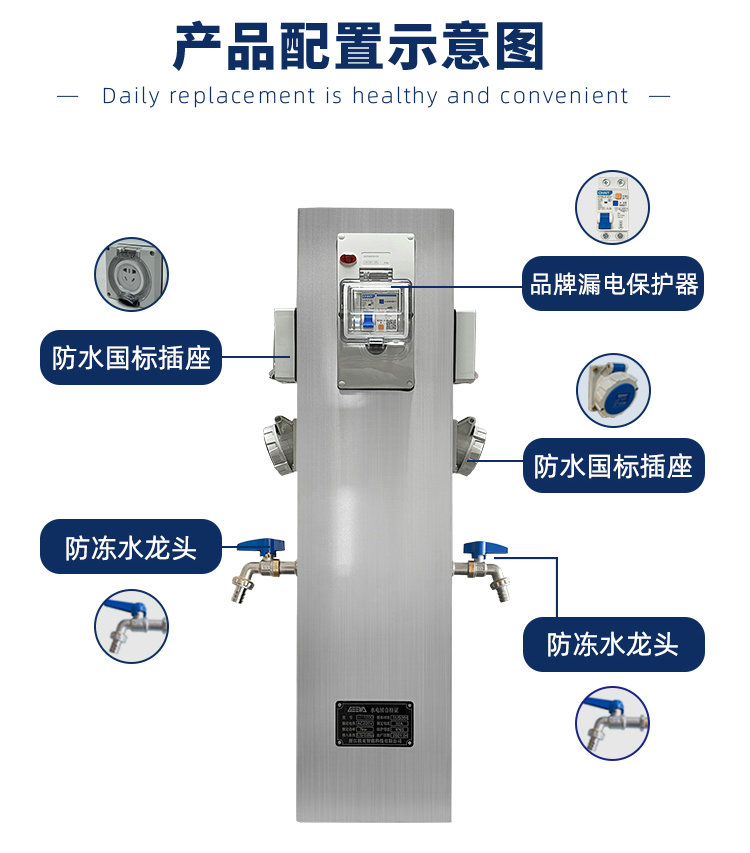 房車營地水電樁GRWE801520D系列水電樁因使用304不銹鋼防水不生銹,耐腐蝕,安全更可靠。IP66防護等級,雙重防塵防水,堅固耐用不老化。防凍水龍頭,極寒不凍裂,冬季無憂。
